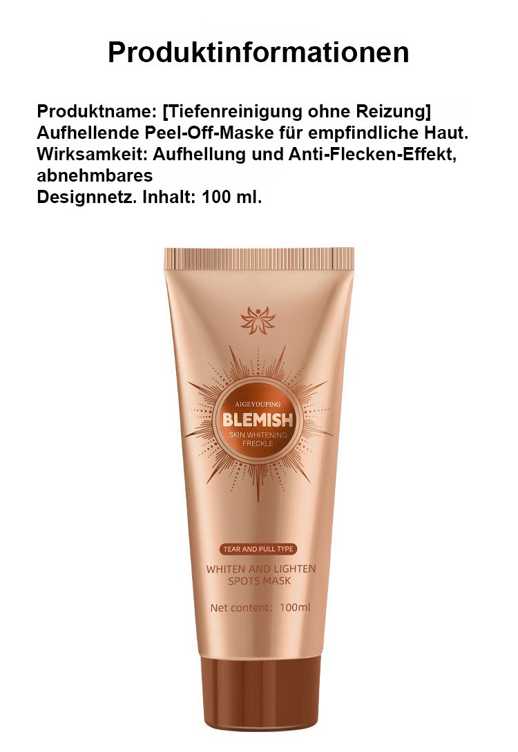 【Tiefenreinigung ohne Reizung】Geeignet für empfindliche Haut - Aufhellende Peel-Off-Maske